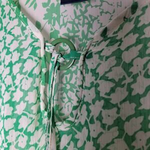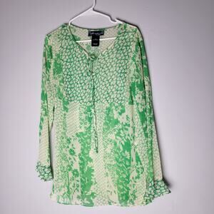 Susan Graver Green and Cream Floral Blouse XL Pullover Artsy Cottagecore Flowy