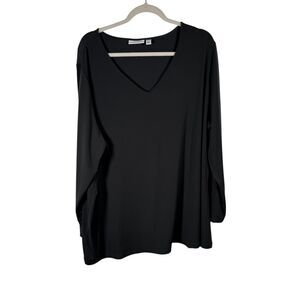 Susan Graver Grey Blouse Liquid Knit Slinky Work Office Career Womens Plus 3x