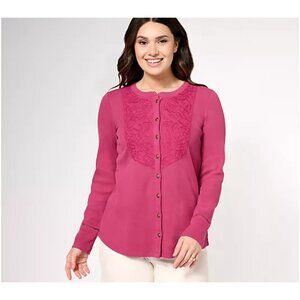 Susan Graver Harbor Green Weekend Waffle Knit Top with Embroidery Size 1X