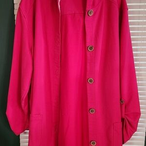 This is a Susan Graver light weight hooded jacket. It is deep pink.