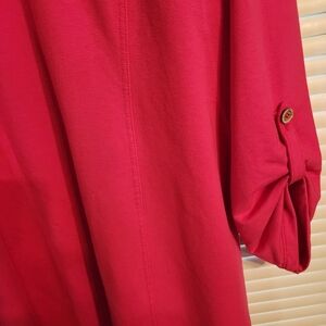 Susan Graver Hooded Jacket Pink 2X Roll Tab Sleeves Wood Buttons Lightweight
