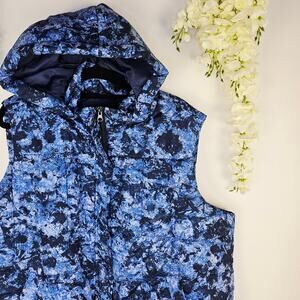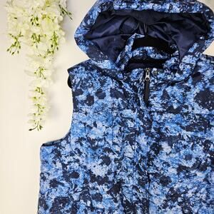 Susan Graver Hooded Puffer Quilted Vest Size 2X XXL Blue Abstract Winter Cozy