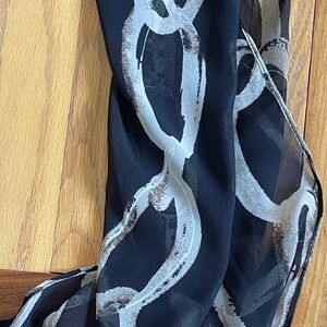 Susan Graver Infinity Scarf Black Brown Cream Chain Print Sheer Fall Accessory