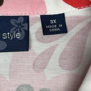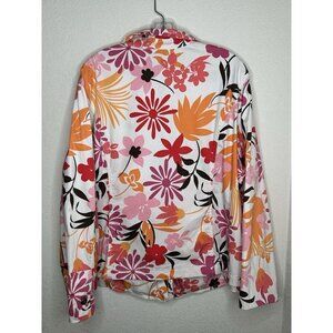 Susan Graver Jacket 3X White Floral Colorful Snap Front Plus Size Stretch Coat Boho Spring Summer