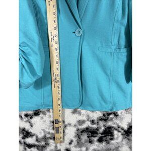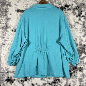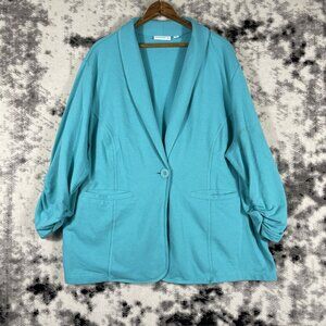 Susan Graver Jacket Blazer Womens Size 2X Light Blue Ruched Sleeve Single Button