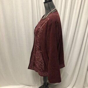 Susan Graver Jacket Womens Size 1X Burgundy Pink Embroidery Faux Suede Blazer