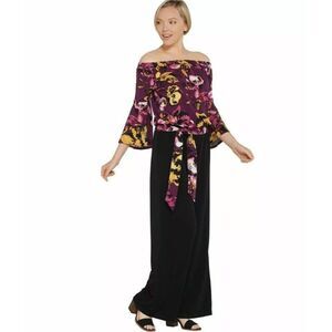Susan Graver Jumpsuit Pantsuit Romper Liquid Knit Bell Sleeve Brown 1X B135