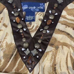 Susan Graver Large Blouse Sheer Tunic Brown Beaded Holiday Event Festive Travel