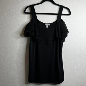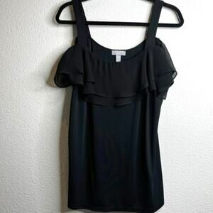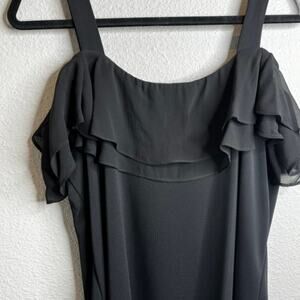 Susan Graver Large Premier Knit Off-the-Shoulder Ruffle Black Top