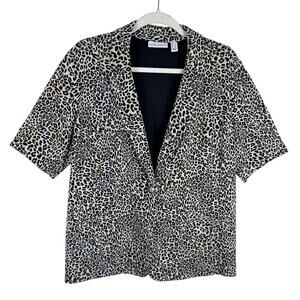Susan Graver Leopard Print Half Sleeve Stretchy Buttoned Blazer Pockets Size L