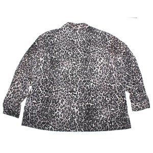Susan Graver Leopard Print Lightweight Button Up Blouse Top Shirt Womens Size 1X