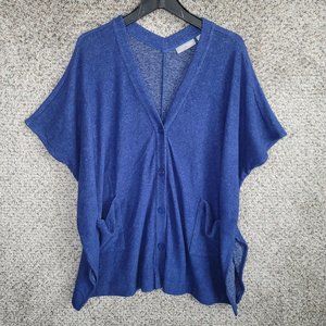 Susan Graver Lifestyle Cardigan Womens XXS Oversized Blue Button Pockets Casual
