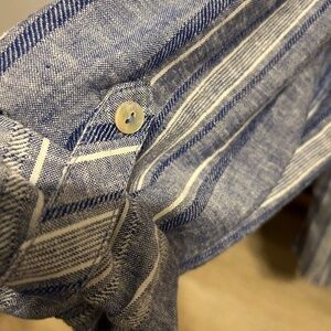 This easy, linen blend tunic is perfect for any day and it keeps you looking breezy and comfortable. Pair with jeans for a casual day or wear it open with a white tank top with slacks. Cuffs can be rolled and buttoned up. Features buttons down the front, collar and front chest pocket. Linen Blend: 55% linen, 45% rayon