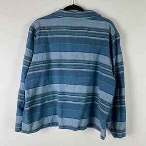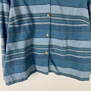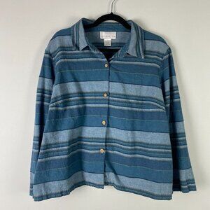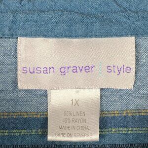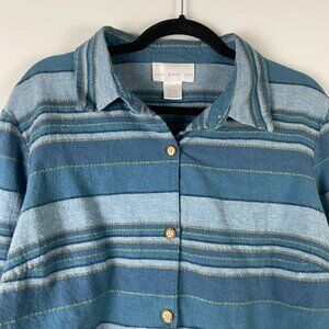 Susan Graver Linen Blend Short Button Up Shirt Womens 1X Blue Stripe