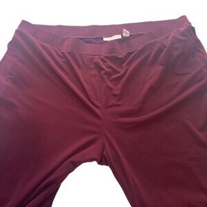 Susan Graver Liquid Knit 1X Wide-Leg Pants Pull on Pockets Women's Burgundy Soft