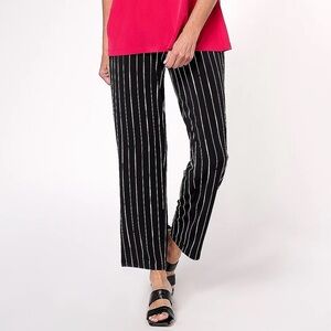 Susan Graver Liquid Knit Black White Stripe Printed Ankle Pants