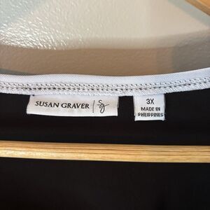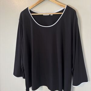 Susan Graver Liquid Knit Blouse Black White Top Mature Capsule Minimalist Sz 3X