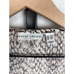 Susan Graver Liquid Knit Button Front Top Women’s 3X Brown Snake Print Stretch