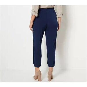 Susan Graver Liquid Knit Crop PullOn Jogger w/Buttons 5X Navy Blue A479203 NEW