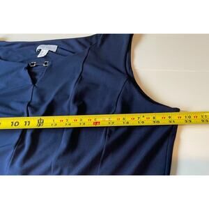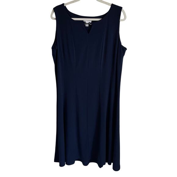 Susan Graver Liquid Knit Dress Sz L Sleeveless Navy A-Line Keyhole Detail Travel