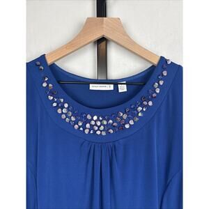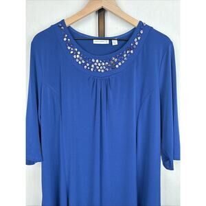 Susan Graver Liquid Knit Midi Shift Dress Women's Large Blue Beaded Neckline