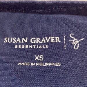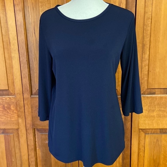 Susan Graver Liquid Knit Navy Bateau Neck 3/4 Length Sleeve Size XS