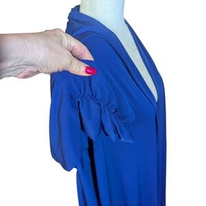 Susan Graver Liquid Knit Open Front Royal Blue Long Cardigan Sz 2X