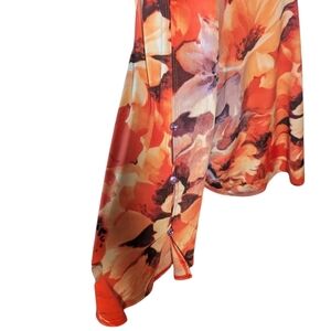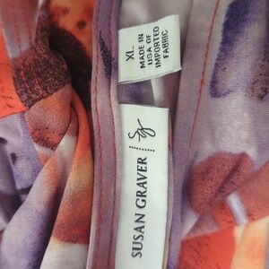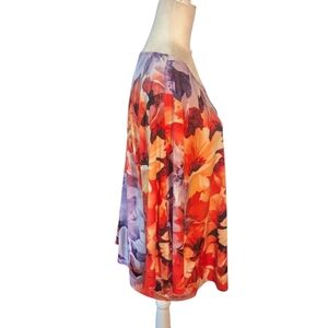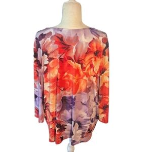 Susan Graver Liquid Knit Purple and Orange Print Bell 3/4 Sleeve Tunic Sz xL