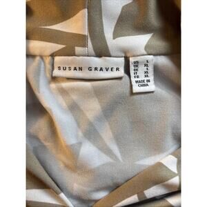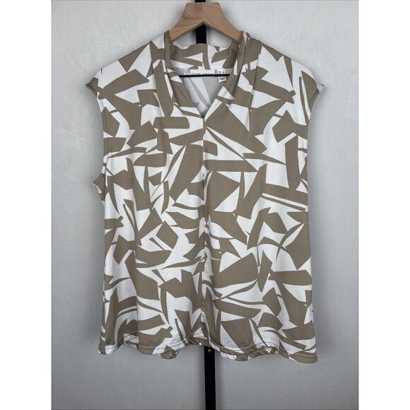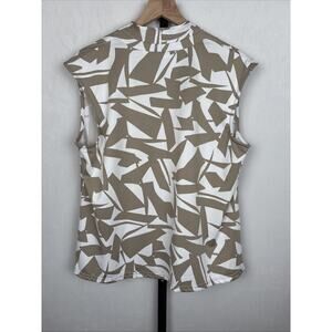 Susan Graver Liquid Knit Tank Top Women's Large Beige Geometric Stretch Workwear