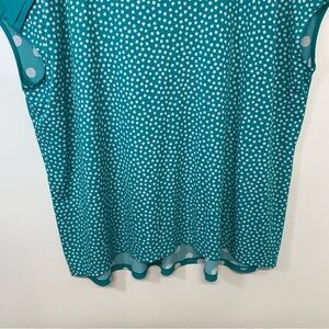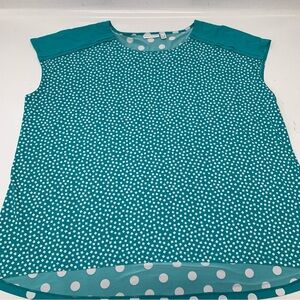 Susan Graver Liquid Knit Top 3X Green Polka Dot Cap Sleeve Hi Low Stretch Casual