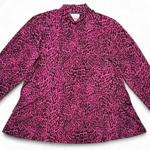 Susan Graver Liquid Knit Tunic Top 2X Berry Purple Black Animal Print Mock Neck