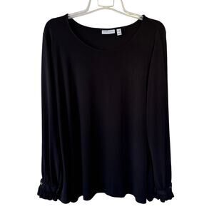 Susan Graver Liquid knit size 3X Black boat neck button cuff blouse