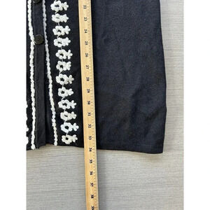 Susan Graver Long Ramie Cotton Knit Cardigan Floral Embroidered Black
