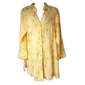 Susan Graver Long Tunic Top Embroidery Boho Button Front Long Sleeves Sz. L