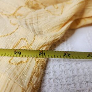 Color is cheerful yellow with tone on tone embroidery