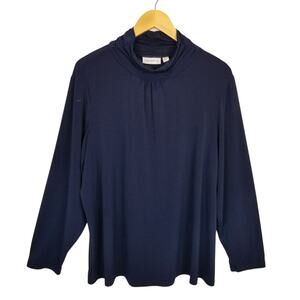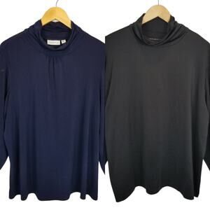 Susan Graver Lot of 2 Liquid Knit Long Sleeve Turtle Neck Sweater Navy Black 2X