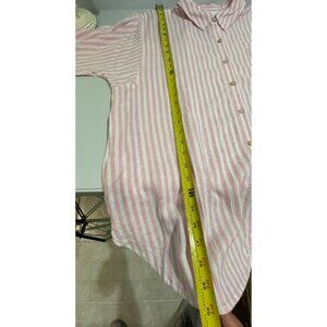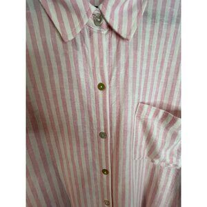 Susan Graver Luxe Pink & White Striped Linen Blend Button-Down Shirt Size Large