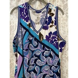 This Susan Graver Maxi Dress in size 2X features a beautiful V-neckline and sleeveless design, making it perfect for a casual occasion during the summer, fall, or spring seasons. The dress is made of a comfortable spandex and rayon material, with a long length and colorful pattern that adds a touch of vibrancy to your wardrobe. The pullover closure and stretchy fabric ensure a comfortable and flattering fit for women looking for a stylish and versatile maxi dress.