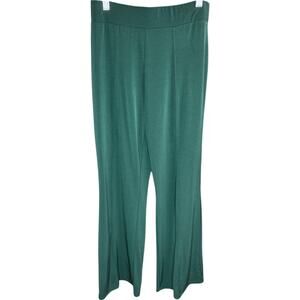 This item is a Susan Graver Modern Essentials Liquid Knit Boot-Cut Pants in the color Evergreen Pine. They are a size XX-Small Petite. This item has never been worn but has been laundered and may show signs of wash wear.