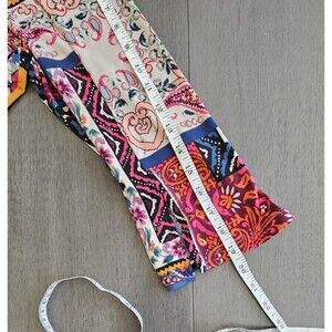 This Susan Graver Liquid Knit Top is a versatile addition to any wardrobe. The top features a patchwork pattern in multiple colors, with 3/4 split sleeves and a V-neckline. It has a casual sleeve type and a pullover closure, making it easy to wear for any occasion, whether it be travel, party/cocktail, casual or workwear. Excellent condition! See pictures for measurements