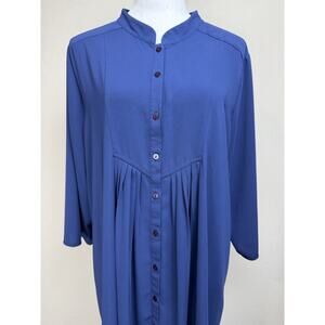 Susan Graver Navy Blue Women's Top Blouse Tunic Button Up Pinch Pleated SZ XL
