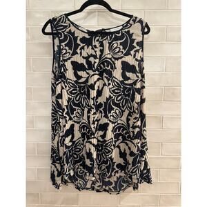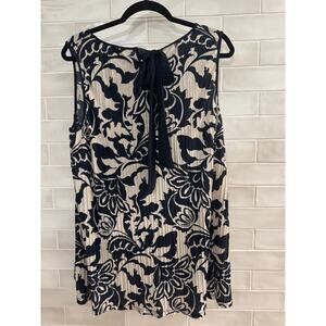 Susan Graver Navy Cream Sleeveless Pleated Blouse with Bow Size Large