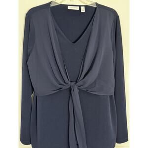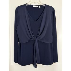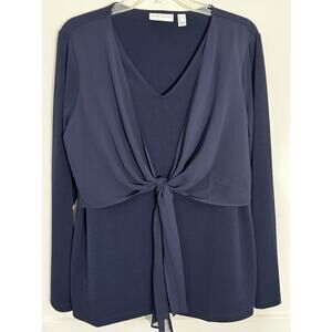 Susan Graver Navy Size M top Travel Office Comfortable Faux Wrap LagenLook