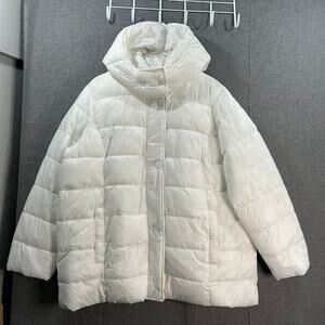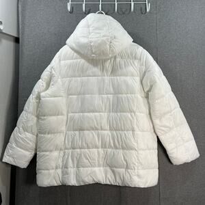 Susan Graver Nylon Cire Water Resistant Hooded Puffer Jacket White Size 2X