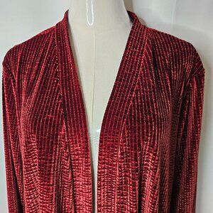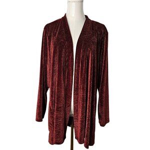 Susan Graver Occasions 1X Petite Pleated Velvet Open Cardigan Rust Red Boho