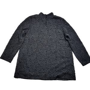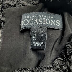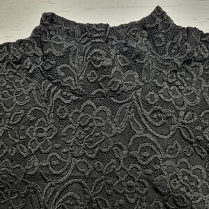 Susan Graver Occasions Black Button Mock Neck Lace Floral 3/4 Sleeve Top Medium