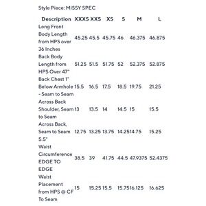 Length: missy length 45-1/2" to 47-5/8"; plus length 48" to 49-3/4"