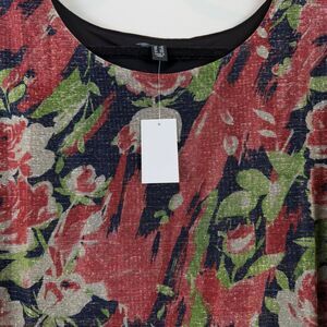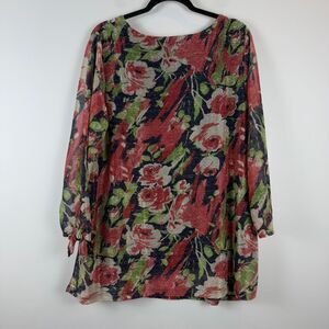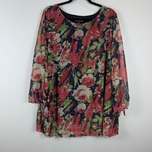 Susan Graver Occasions Top Women 1X Multicolor Foil Printed Tie Sleeves Glam NWT