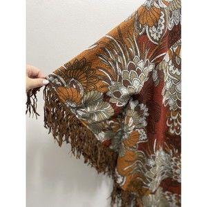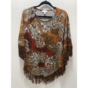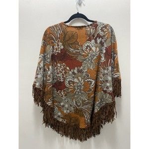 Susan Graver Patterned Floral Fringe Poncho Sweater Size Xs/s