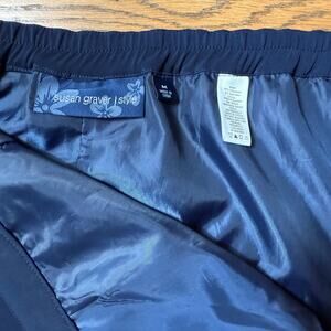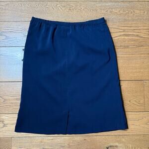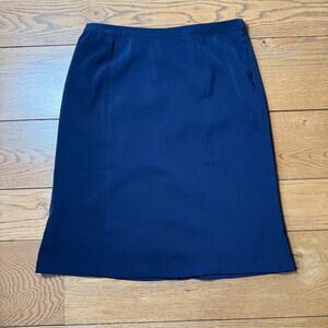 Susan Graver Pencil Skirt M Navy Side Zip Career Work Boss Classic Knee Uniform